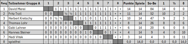 Michael Wegenstein | - | Friedl Litzenberger | 0,5 : 0,5 |