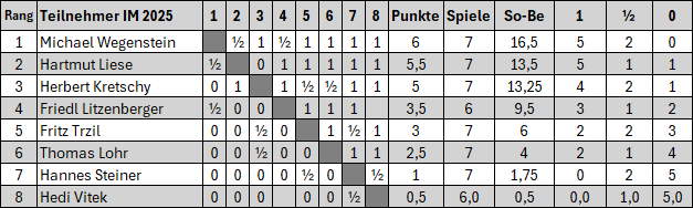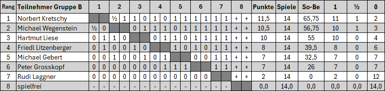 Michael Wegenstein | - | Norbert Kretschy | 0,5 : 0,5 | 0 : 1 |